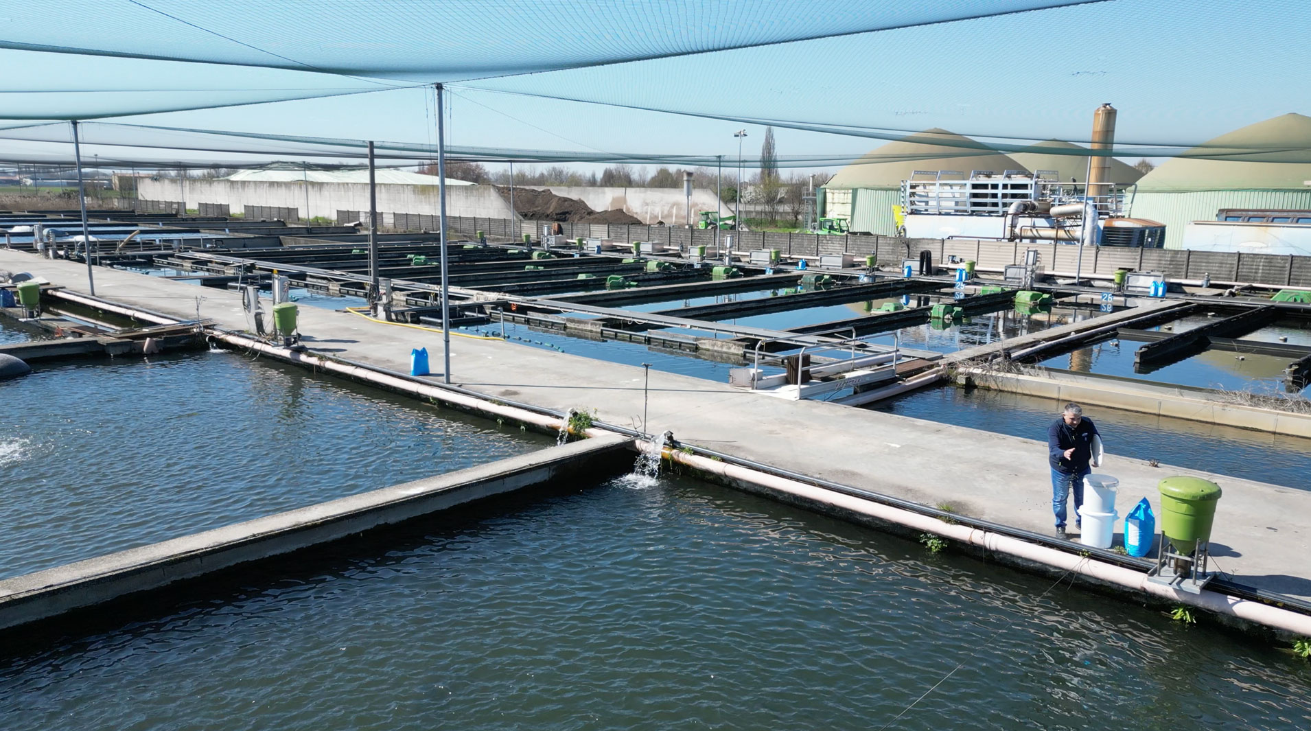 L’azienda investe nella sostenibilità attraverso impianti fotovoltaici da 200 kWp e un moderno impianto a biogas da 1 MW. Queste fonti coprono il fabbisogno energetico delle attività aziendali, tra cui il riscaldamento delle vasche ittiche e delle strutture, garantendo efficienza e riduzione dell’impatto ambientale.